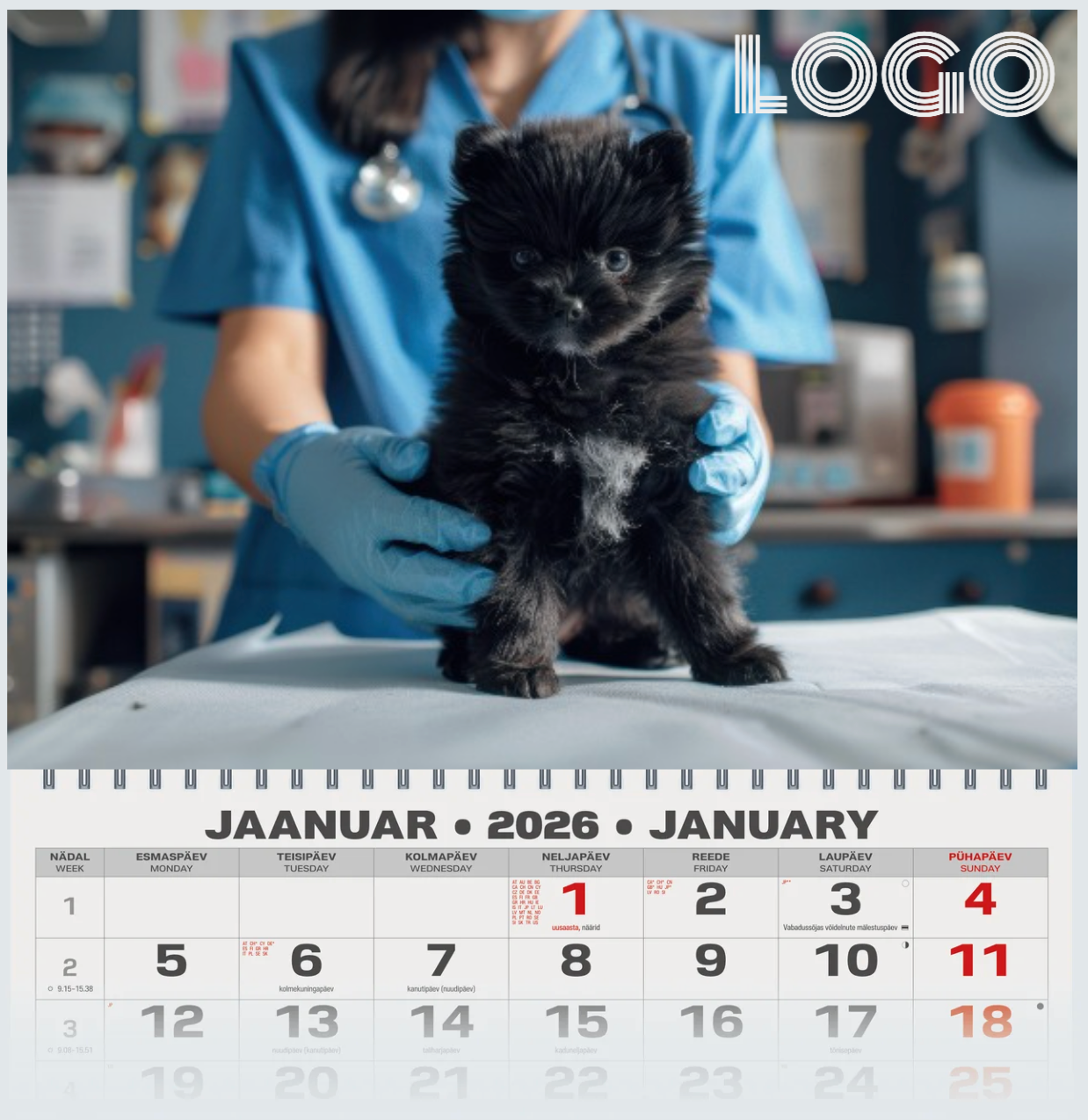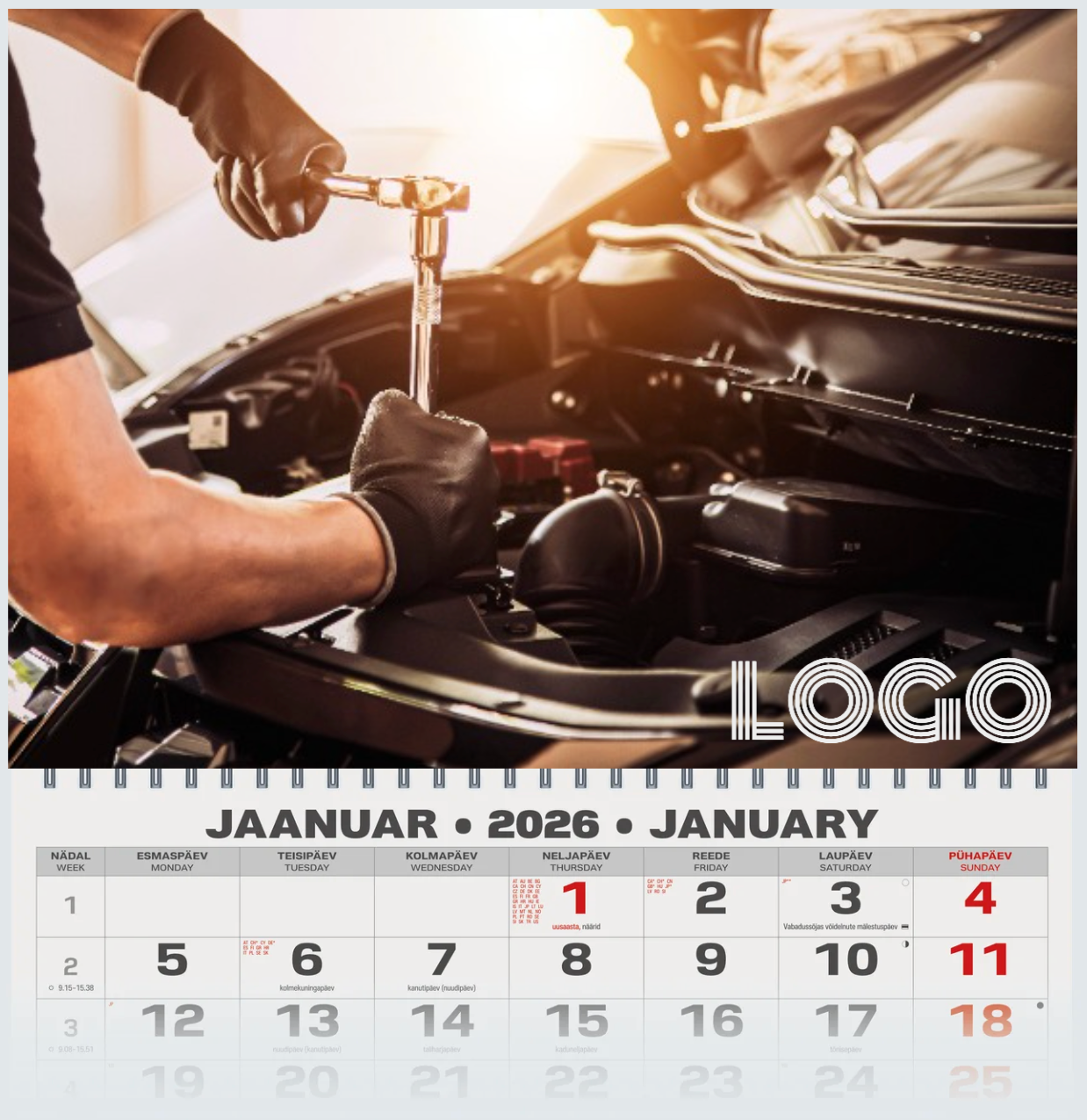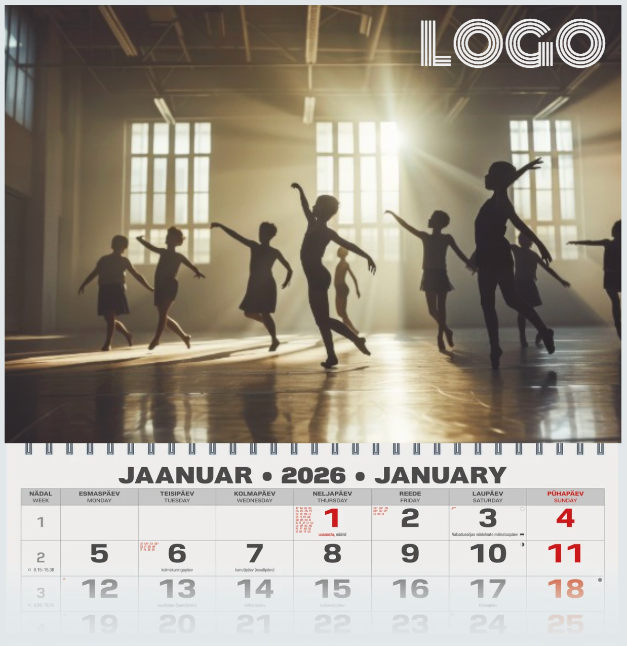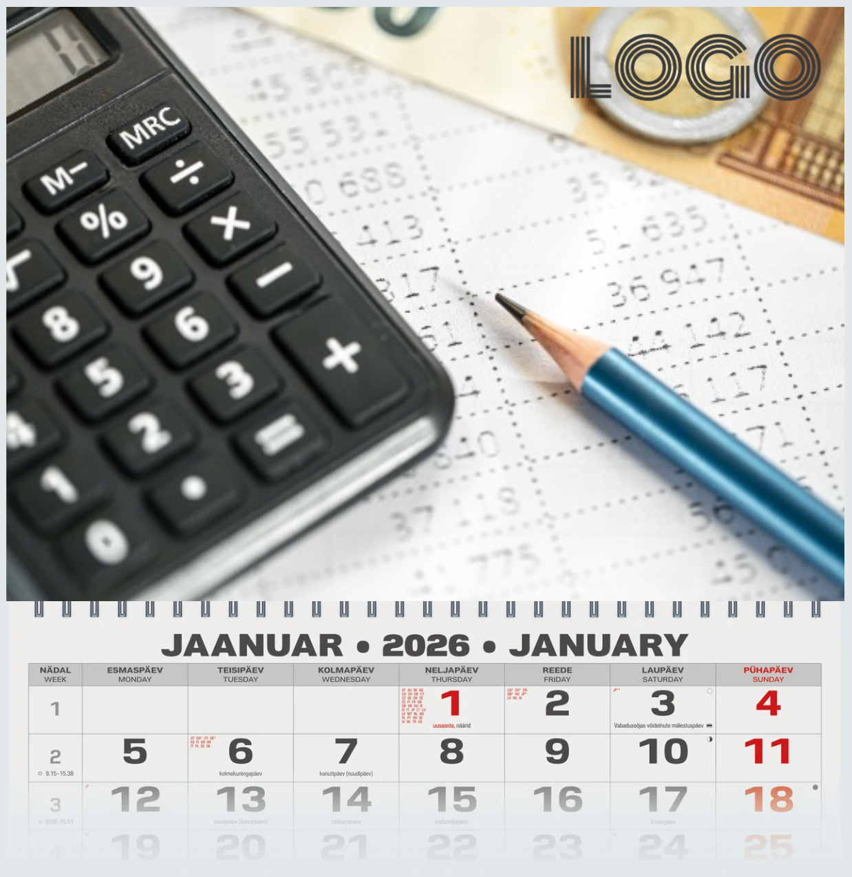 TRIO Logo Calendar is pre-designed wall calendar, which has a special place your company logo, contact details or To QR code which can lead to, for example, reservation system, to the website or social media profile. If necessary, you can change the background image to your own image.